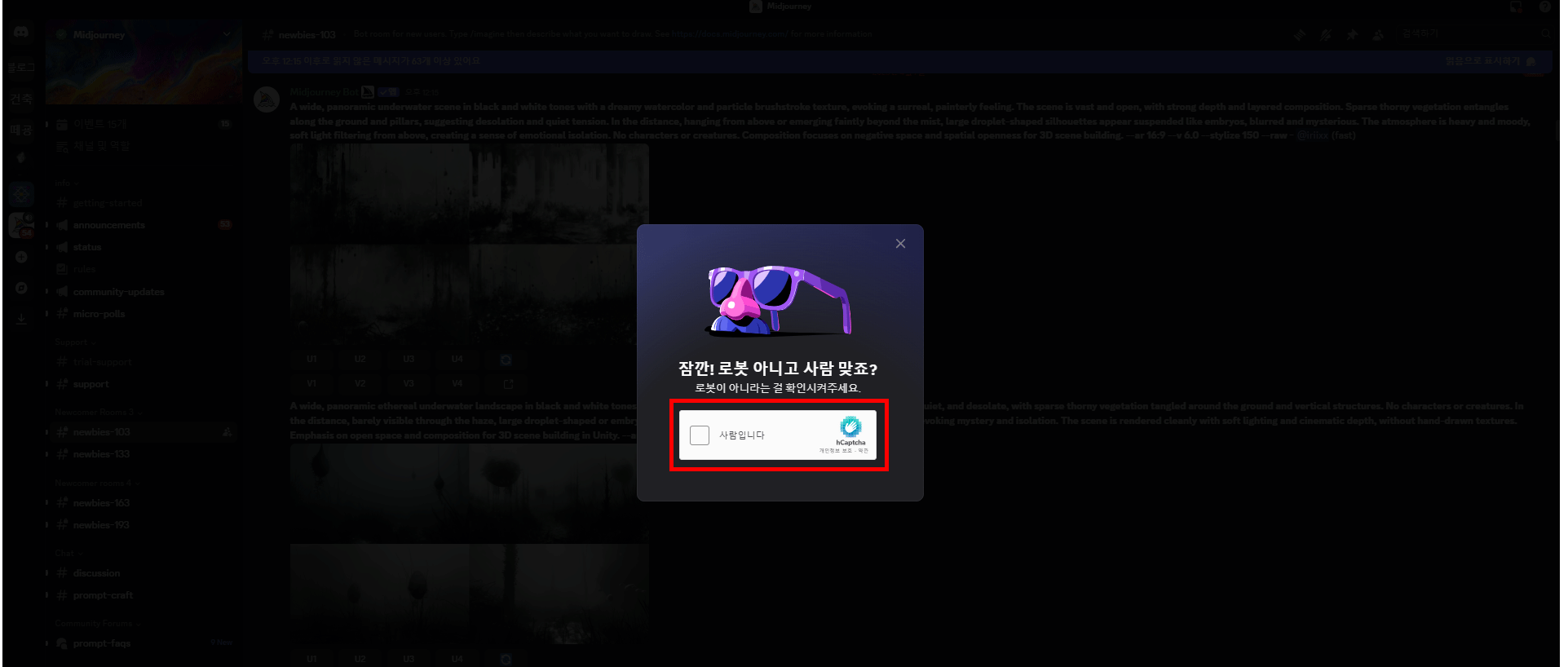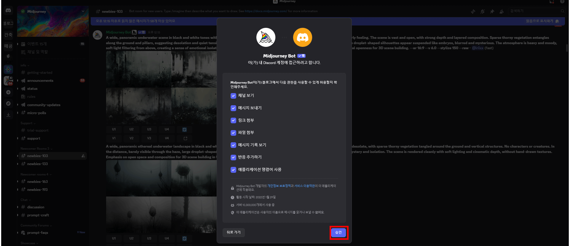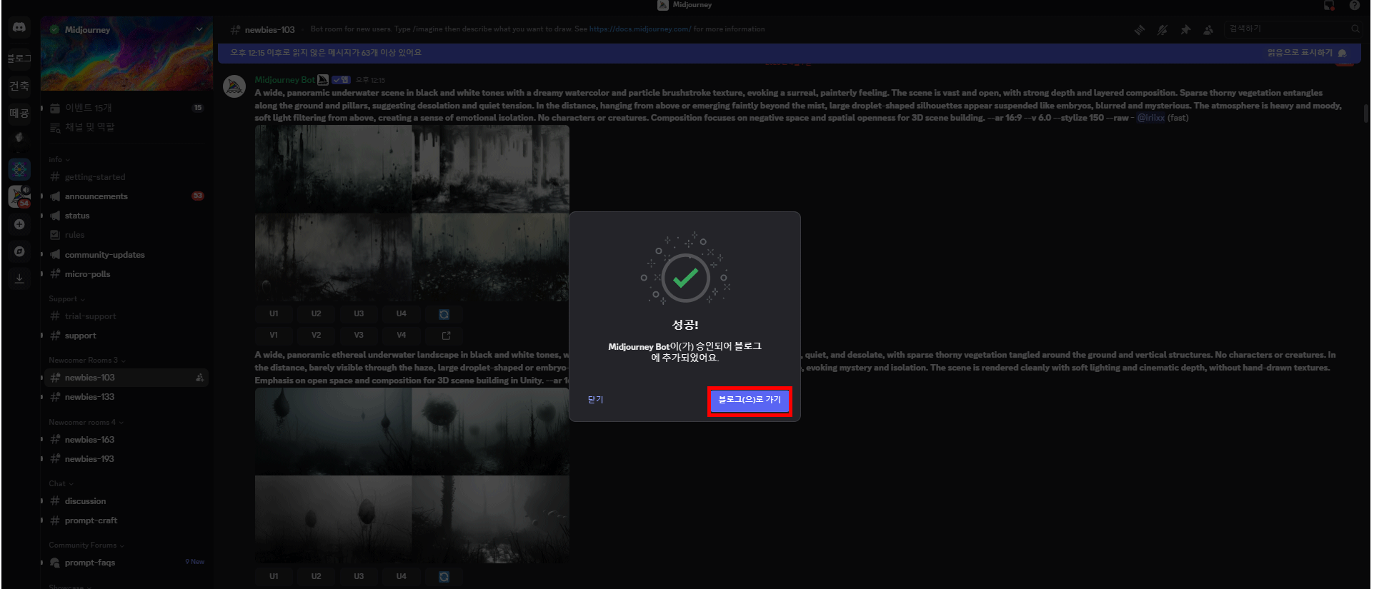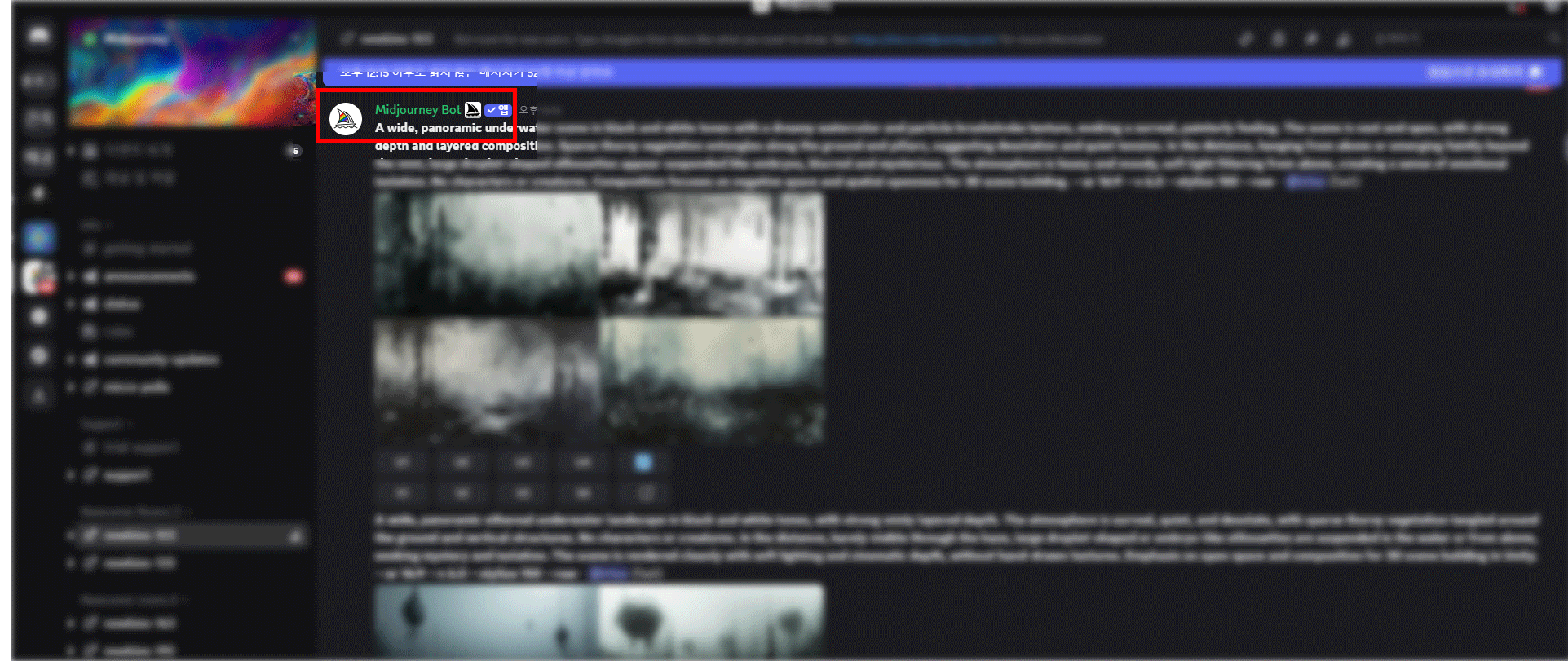 미드저니를 처음 시작하면, 대부분 공식 디스코드 서버에서 이미지를 생성할 텐데