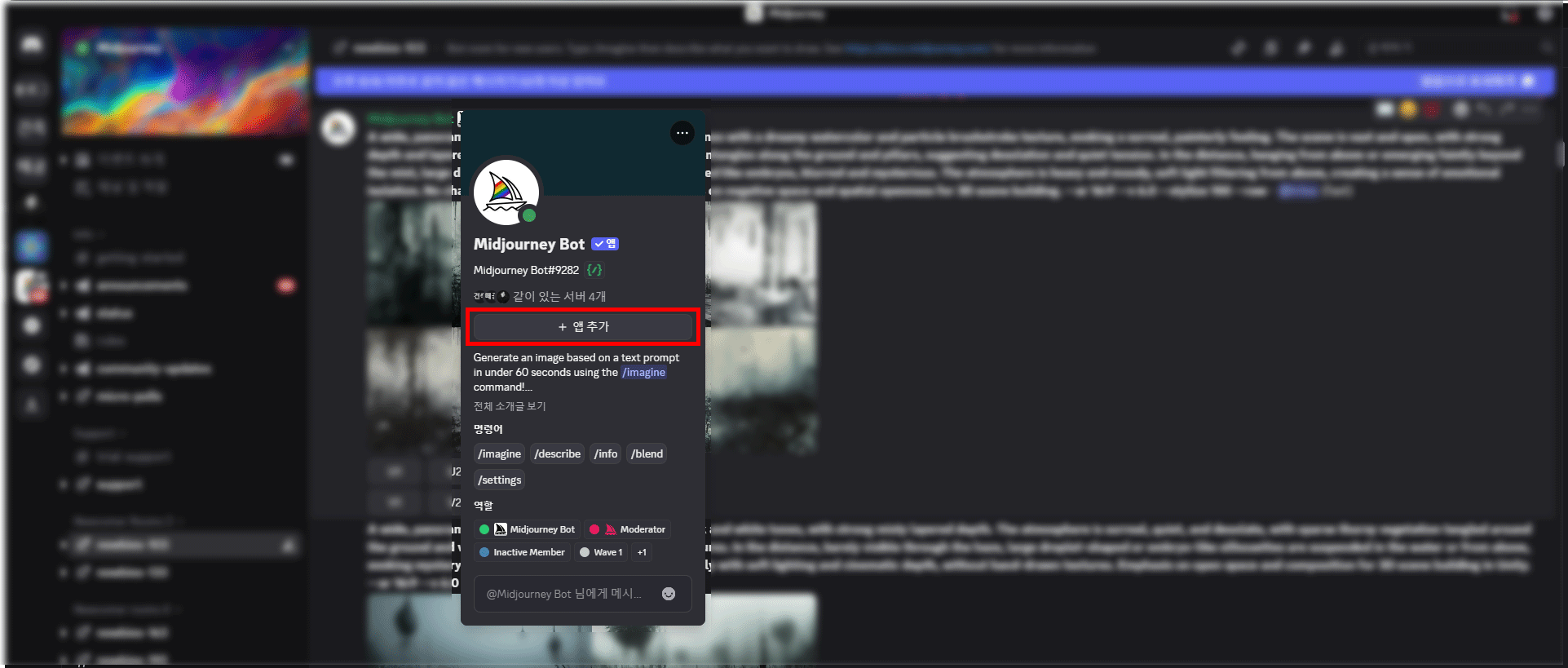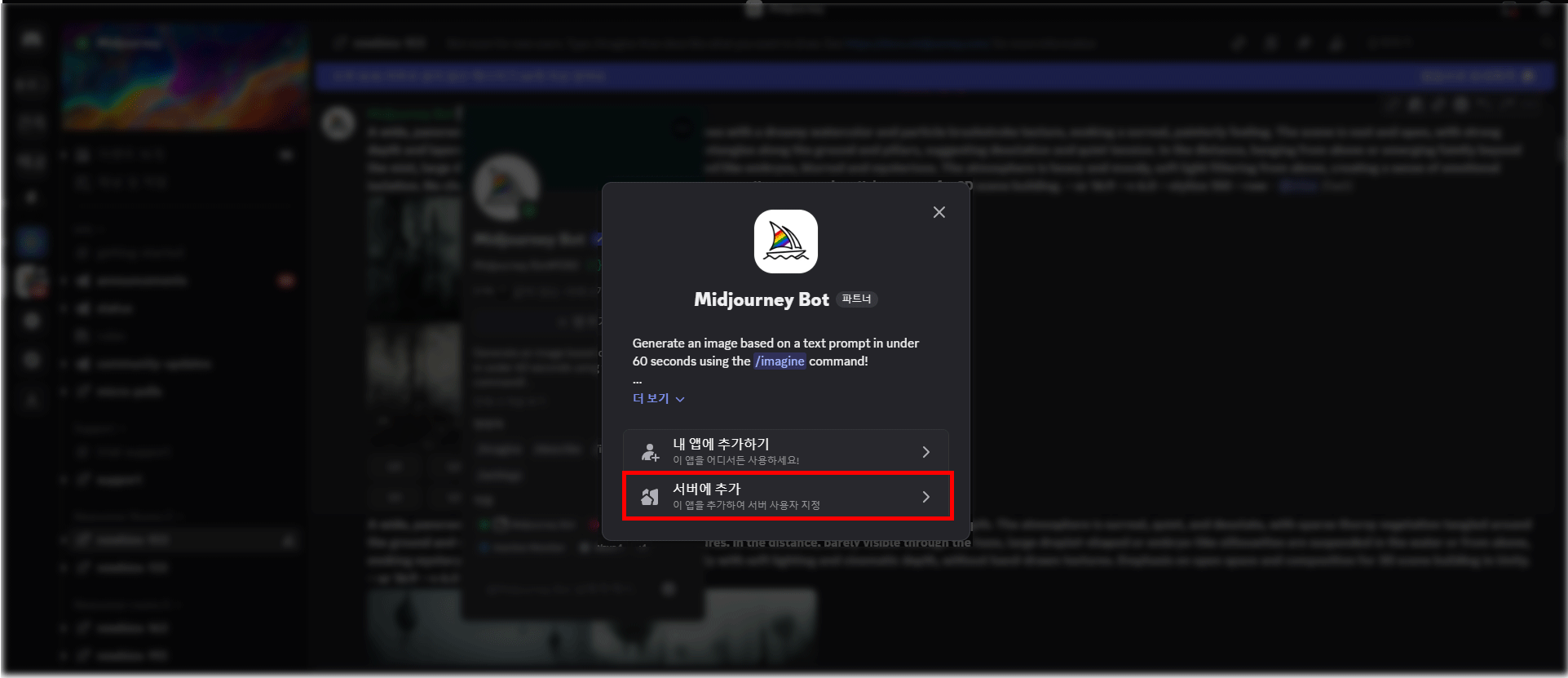 7. 미드저니봇에서 앱 추가 클릭