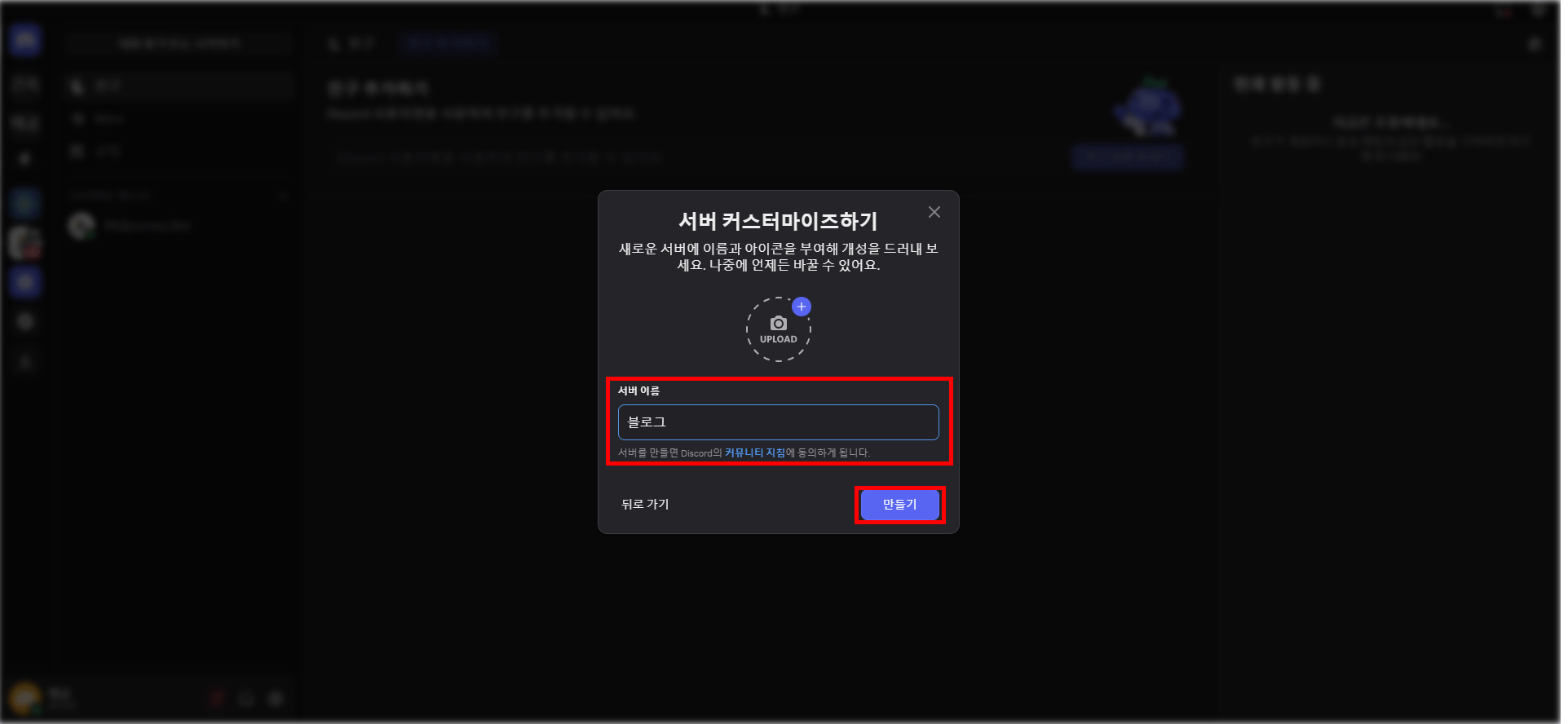 저는 블로그에 올릴 이미지를 생성할 거라서 서버 이름을 블로그로 해줬어요~^^